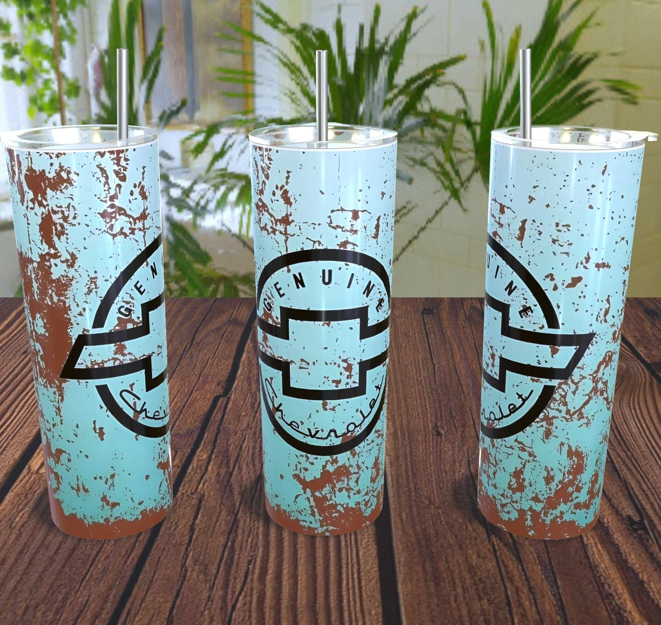 Show off your Chevy pride with this ruggedly stylish 20 oz double wall insulated tumbler! Featuring a rustic Chevrolet design, this tumbler is perfect for road trips, garage days, or just sipping your favorite drink in style.